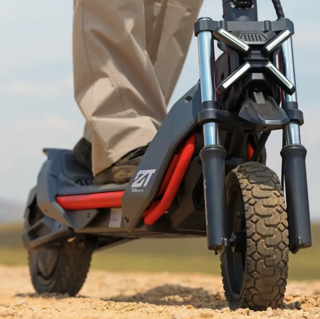 El ZT3 Pro equipado con suspensión telescópica doble delantera y suspensión de resorte trasera, está diseñado para minimizar el impacto de obstáculos como veredas, baches y caminos de grava.